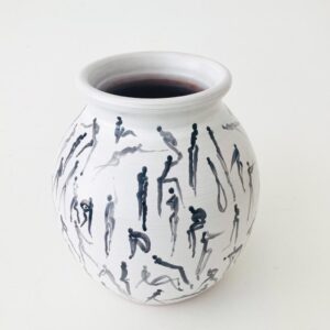 Matamoro desliza el pincel con un solo trazo sobre el soporte de cerámica, de piel pálida, lisa y fría, como un papel donde baila la mano. Una línea desnuda de color negro recorre el vacío, dejando atrás a veces un color luminoso. Traza una curva y surge una representación. Economía de medios. Síntesis de la memoria que fue contemplación.