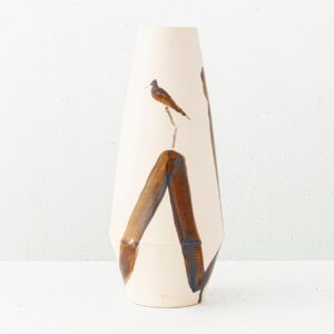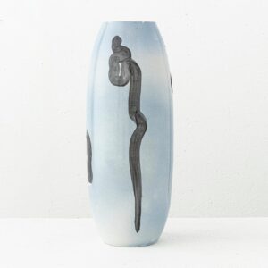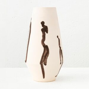 Matamoro desliza el pincel con un solo trazo sobre el soporte de cerámica, de piel pálida, lisa y fría, como un papel donde baila la mano. Una línea desnuda de color negro recorre el vacío, dejando atrás a veces un color luminoso. Traza una curva y surge una representación. Economía de medios. Síntesis de la memoria que fue contemplación.
